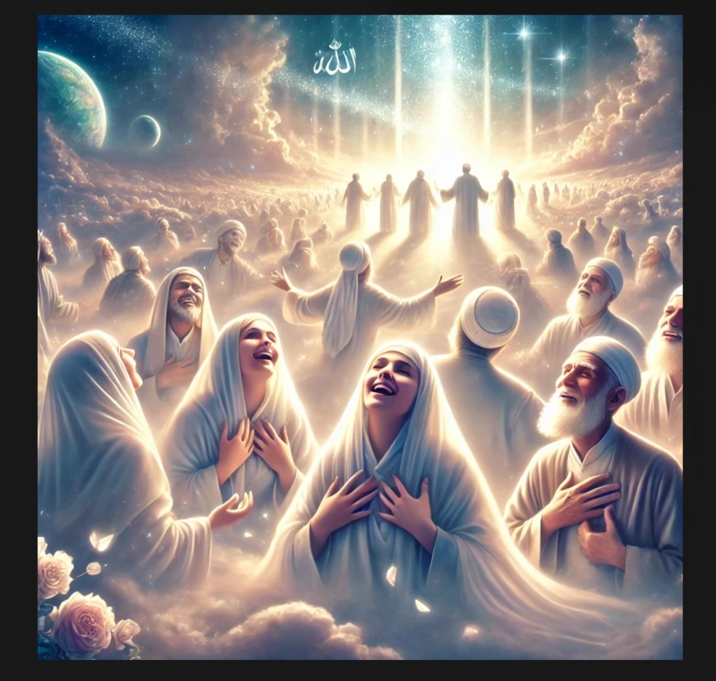 The joy will be endless and the ecstasy immortal. The lust will be the servant and love pure master. Then, after whole desires of flesh and the soul is met, the people of heaven will shed tears and their eyes get wet. Listening to the voice of Haq from the Allah, will be their path to returning back to the realms of creation.